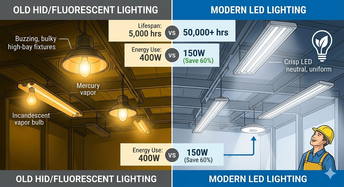 For many facility managers, the cost of the electricity is only half the problem. The true "silent killer" of a budget is the maintenance required for old bulbs. Traditional HID lamps have a lifespan of roughly 10,000 to 20,000 hours, meaning in a 24/7 operation, they require replacement every two years.